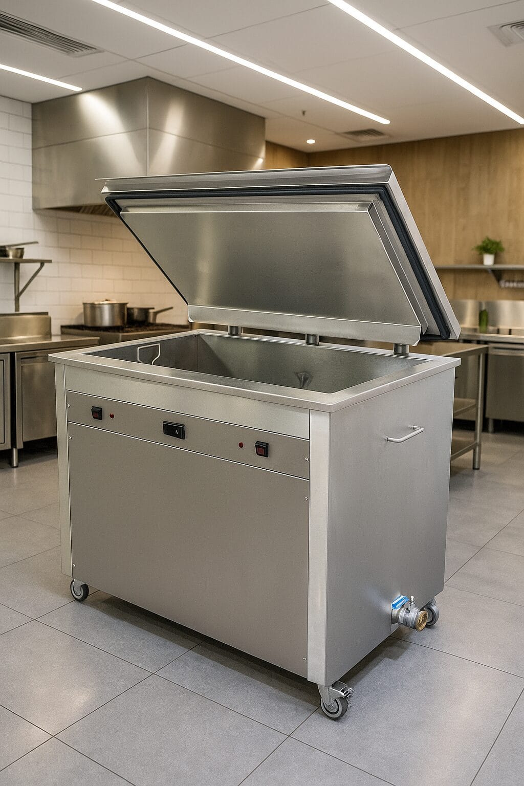 Em pouco tempo, com baixo custo, reduzida necessidade de mão de obra e fácil manuseamento, todos os utensílios de cozinha — como filtros de exaustores, frigideiras, caçarolas, grelhas, tábuas de corte e tabuleiros — ficam totalmente limpos e desinfetados.