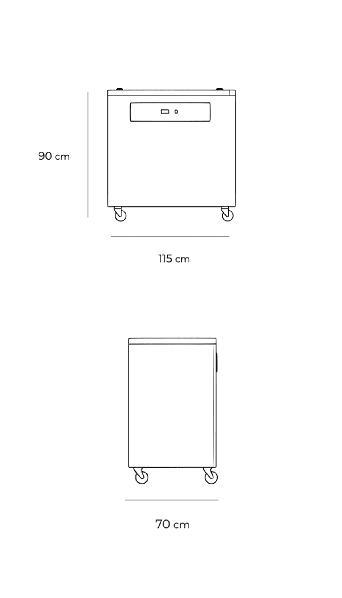 - Dimensões externas (A × L × P): 90 × 115 × 70 cm